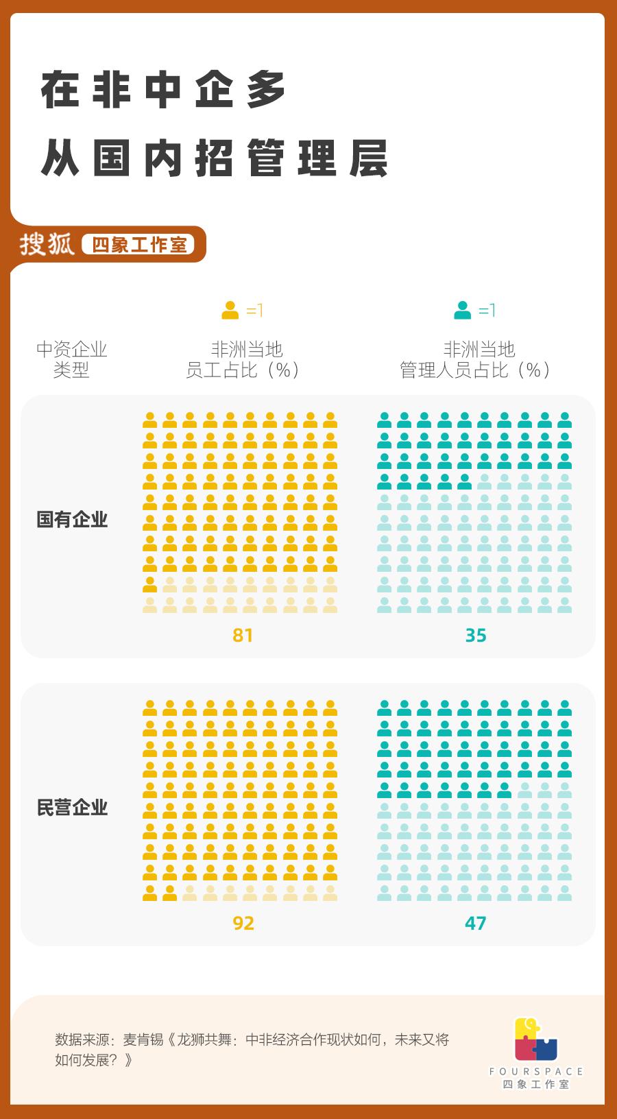 首先,这可能和当地中企在国内招聘的岗位有关。根据麦肯锡报告,在非洲开展业务的中国企业主要雇佣的是当地人 ,但管理层里的当地人占比则大幅下降,意味着不少管理人员是从国内派出。