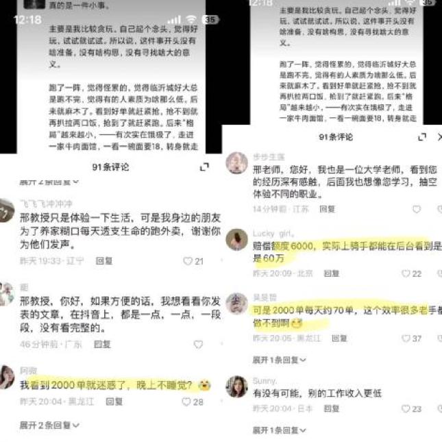 大学教师送外卖“月跑两千单”遭质疑,本人回应