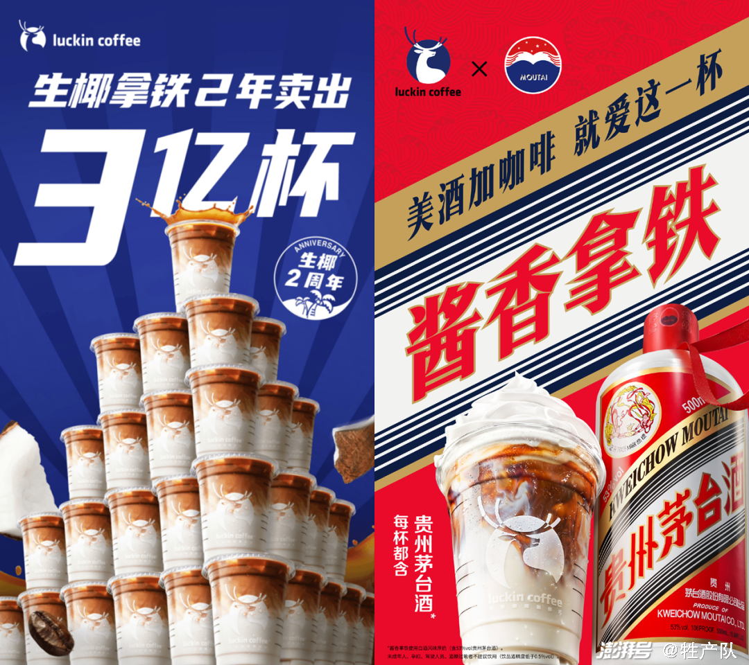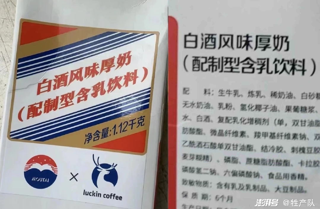 比如生椰系列,就是牛奶、糖、咖啡,加上生椰乳;碧螺知春,就是牛奶、糖、咖啡,加上碧螺春茶;而今的酱香拿铁,也就是把茅台酒作为辅料,添加进去。它的核心口感还是来源于牛奶、糖和咖啡,辅料的添加,只是提高它的风味,让你在喝咖啡的时候,可以喝到椰汁的味道,也可以喝到白酒的味道。同时,这些辅料的添加,又不会破坏牛奶、糖和咖啡的底色。