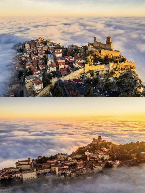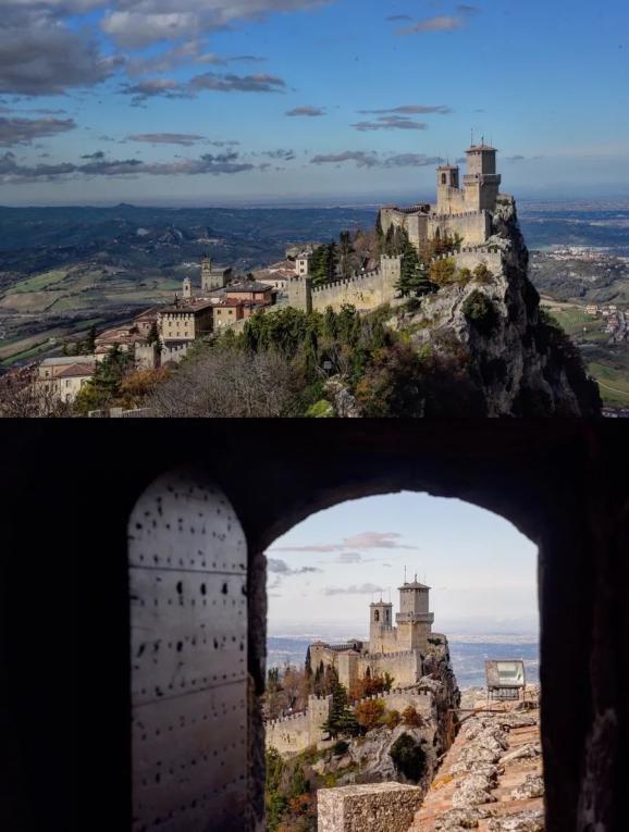登上位于高山之巅的圣马力诺城堡,它既是一座博物馆也是一座承载着圣马力诺历史的“最高点”,俯瞰周围的群山和民居,在云雾环绕中隐隐透出身影,从西南的丘陵到东北的平原,眼前所见既是圣马力诺的全部。