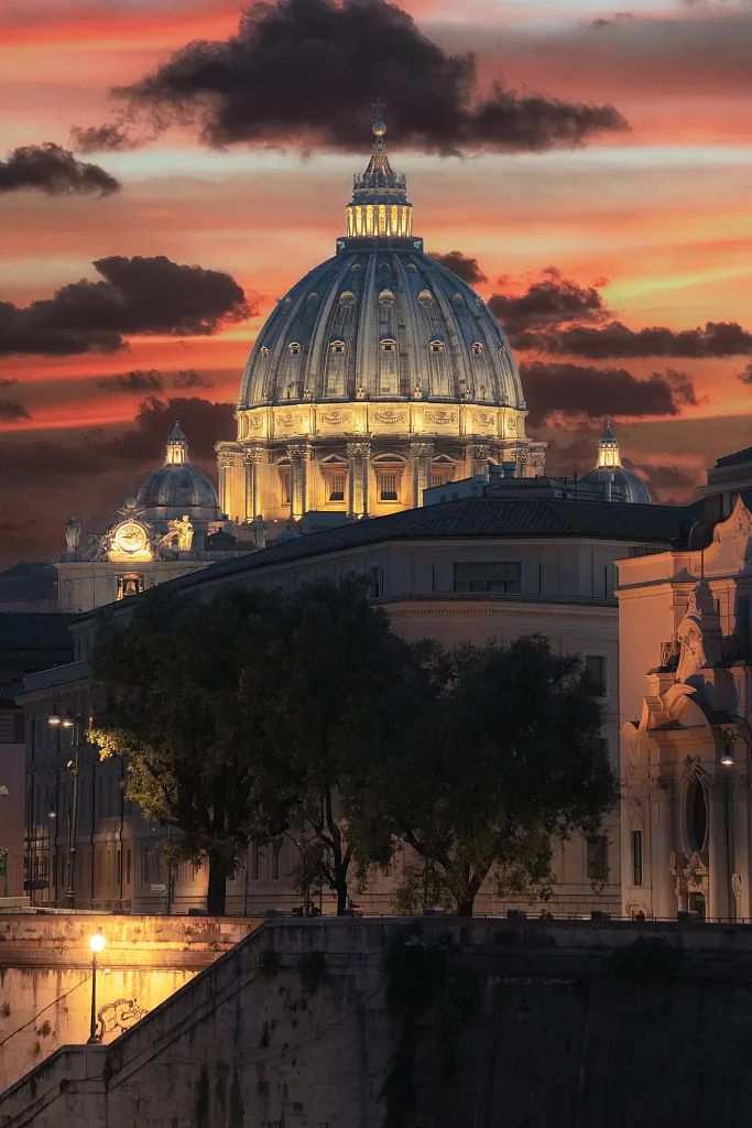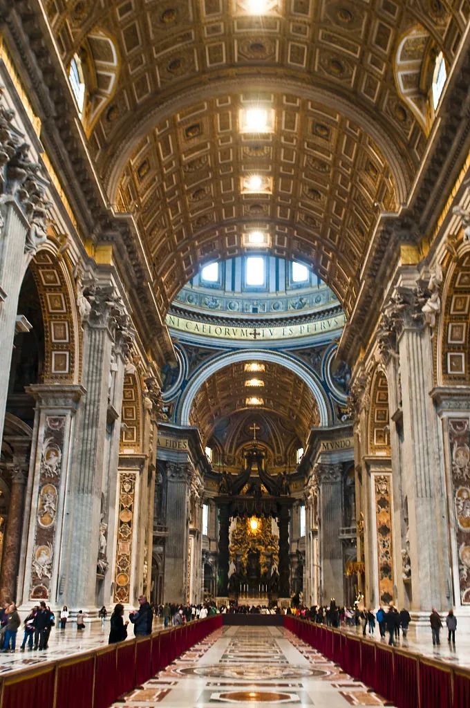 138米高的穹顶富丽堂皇,每扇大门上都雕刻着圣经中的故事与人物,教堂内部更是一座艺术宝库,天花板和墙壁上装饰着金箔,在灯光照耀下显得金碧辉煌,更不用说其中收藏着诸多文艺复兴时期的珍品,甚至还有米开朗基罗的作品《圣殇》。幸运的话,周日还有机会能够遇到为民众祈祷的教皇。