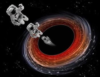 宇航员从外向内穿过黑洞事件视界(对于球对称静止不带电黑洞,事件视界就是史瓦西半径)的想象图。远处的观测者无法看到他抵达事件视界,但他自己可以看到自己接近事件视界并穿入。图片来源:Roen Kelly奥本海默和斯奈德的这篇论文没有提到爱因斯坦几个月前的论文,他们很可能在当时还没看到爱因斯坦那篇论文,也可能觉得不宜或不必直接反驳爱因斯坦。