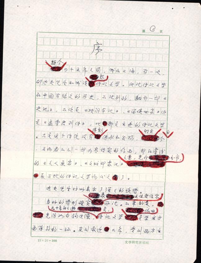 唐弢为陈漱渝著《许广平的一生》所作序言的部分手迹//写《鲁迅传》,只读作品还不够,背后的材料整理颇费工夫