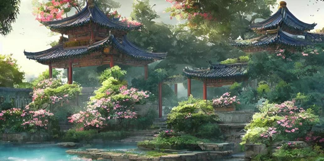 江南园林的水榭凉亭