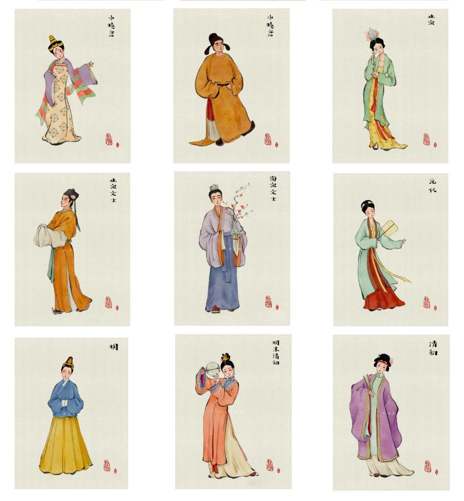 观服章,知文化冷暖。“中国式浪漫”之于传统衣装,所展现的是东方气度,是文明族谱之基因外观。唐宋元明清,朝朝各不同。儒学盛行的两汉,广袖长袍浸润端庄温雅之清娟;风流不羁之魏晋,宽衣博带展超然飘逸之仙气;笙歌鼎沸之盛唐,罗衫襦裙表恢宏繁丽之磅礴……