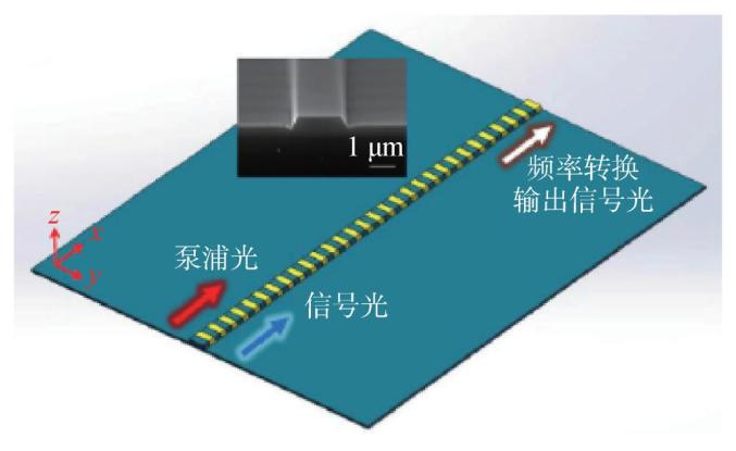 图4 基于铌酸锂薄膜波导的频率转换器件示意图,其中插图为转换波导的电镜照片