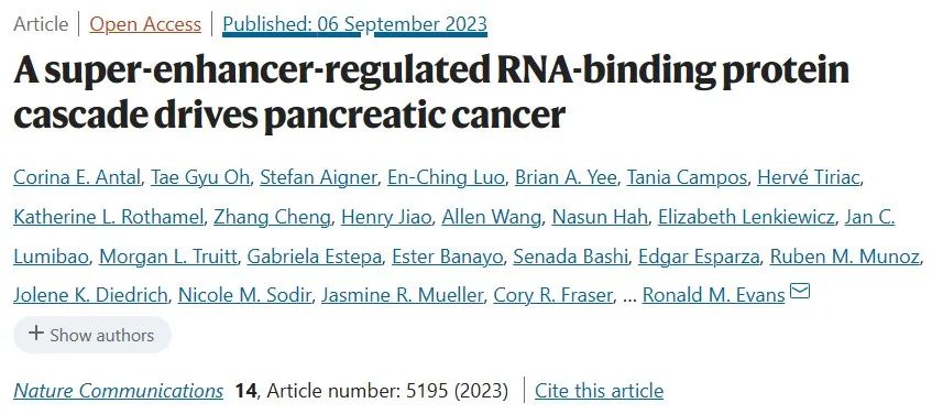 原标题:《【Nature子刊】驱动“癌王”生长!研究发现增强胰腺肿瘤生长的“超级增强子”分子》