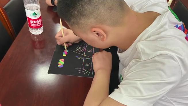 小杰在纸上描绘出自己的梦想:唱歌或医生