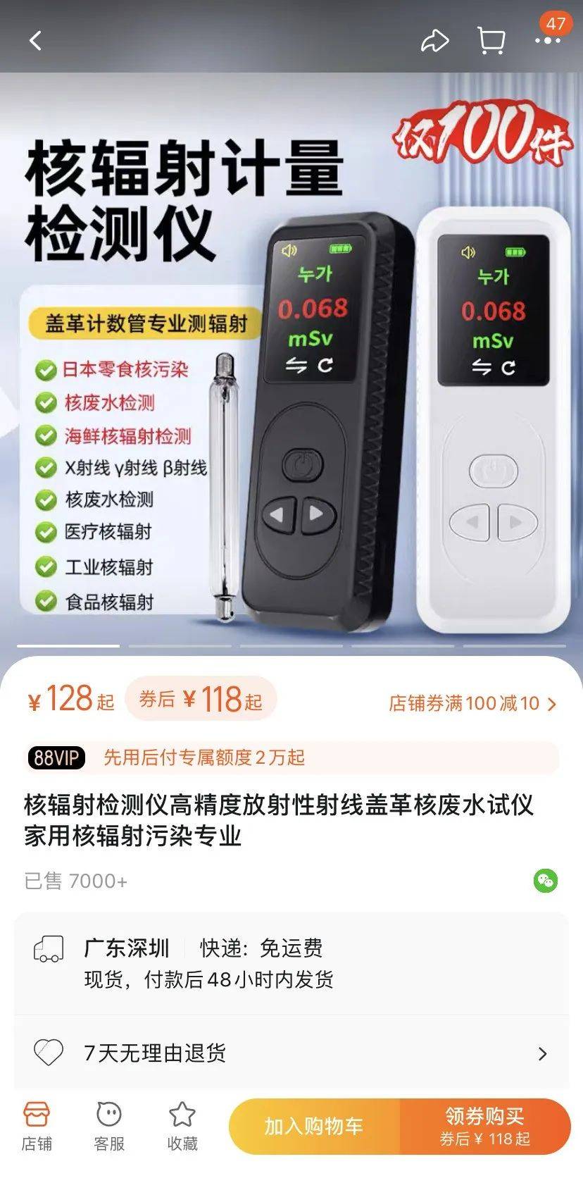 经历了爆单、涨价、限购“三连”后,核辐射检测仪居然从一个冷门专业仪器晋升为“居家必备好物”。而在韩国,不少居民出门买海鲜前,都会在兜里揣上核辐射检测仪,一些水产摊老板在店内备有检测仪,以自证“清白”。