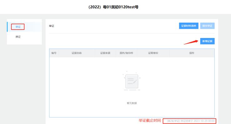 注意:可以多次点击新增证据,直至所有证据材料上传完,再点击“提交举证”,点击“提交举证”后,默认第一轮举证结束,将不能再提交新证据;如有新的补充,可联系法官发起第二轮举证。