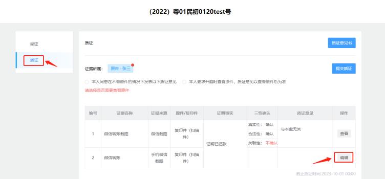 如下图,选择证据的“三性”,发表质证意见;如果需要反证,可以上传附件。