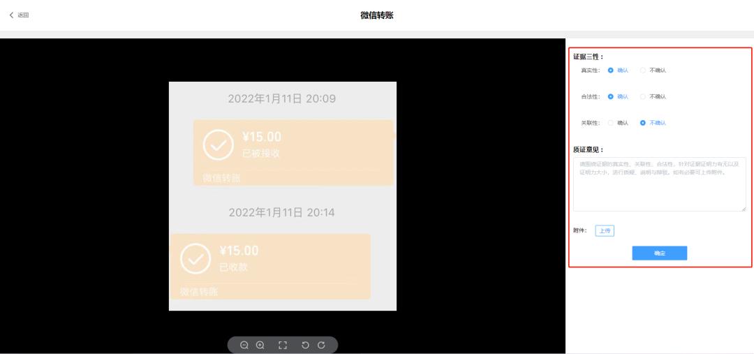 至此,质证环节完成。目前,该平台全程支持电脑端登录操作,支持一步举证、质证。同时在举证环节可使用手机扫描、拍摄并提交补充证据。长按图片扫描二维码