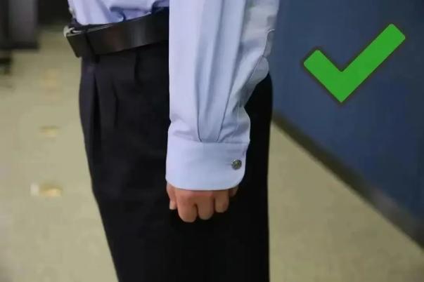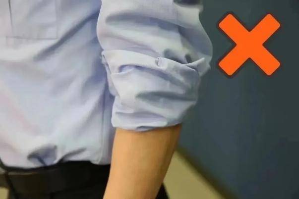 (三)除执行抢险救灾等工作任务外,应当保持警服整洁得体,不得披衣、敞怀、挽袖、卷裤腿等;【图示】