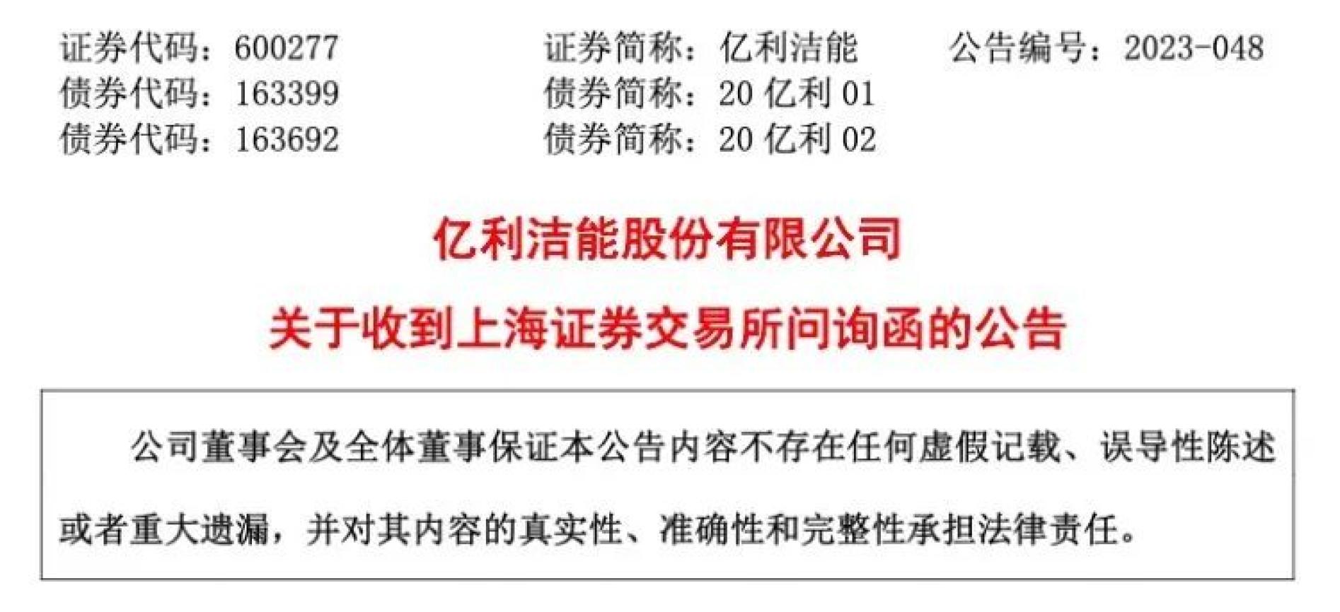 当晚,亿利洁能发布公告称,公司已收到上海证券交易所下发的《关于亿利洁能股份有限公司相关媒体报道的问询函》,要求公司对控股子公司相关事故情况进行核实并回复,同时说明对公司生产经营的影响。