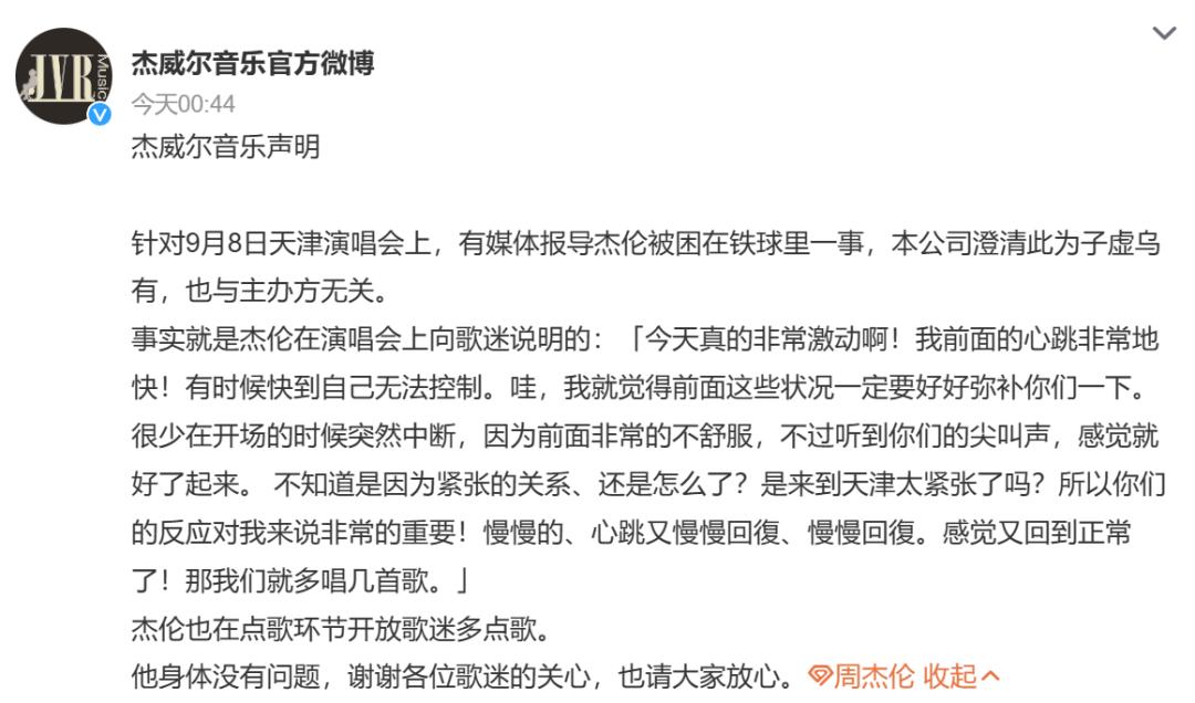 原标题:《周杰伦演唱会突发意外!公司连夜回应》