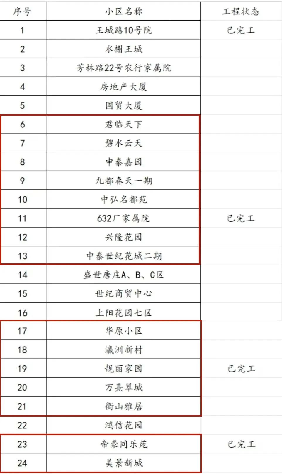 附:今冬采暖季前可完成“转改直”改造的24个小区名单