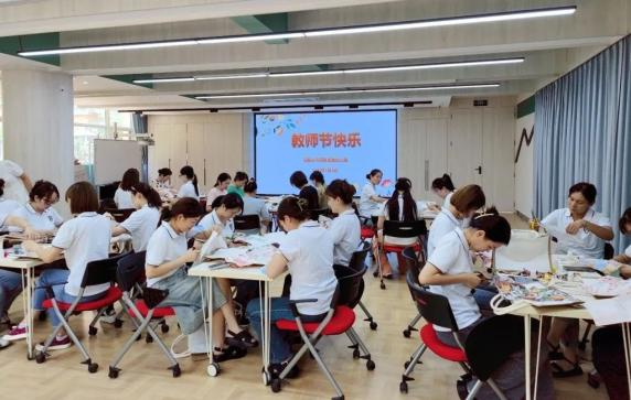 庆祝教师节在第39个教师节来临之际,幼儿园精心策划了教师节主题活动,由孩子们为8名教龄满三十年的教师送上美丽的鲜花,感谢她们三十年如一日的默默耕耘。大家共同制作手工包,送给自己,也送往坚守在幼儿园各个岗位上的老师们手上。