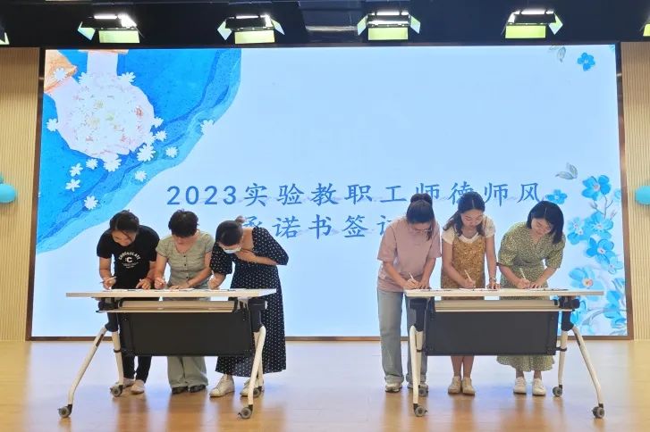 活动中,全体老师一起重温“新时代幼儿园教师十项行为准则”,并一起郑重地在《虹口区实验幼儿园师德师风承诺书》上写下自己的承诺:把自己的爱与温暖倾注到每一天、每一个幼儿身上,让每一个小虹宝都能健康成长,都有出彩机会!虹口庆祝教师节的活动不止在学校,各街道阳光之家及部分居民区也开展了相关活动。