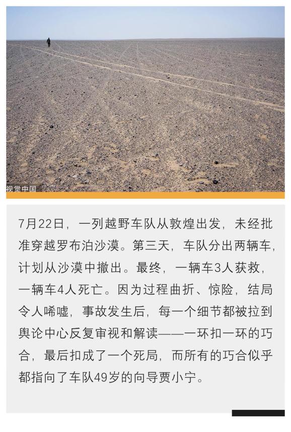 前一天,他正在睡觉,接到一位北京朋友的电话,“一个姓贾的人在罗布泊失联了。”