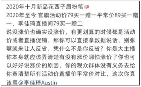 之所以没有立马回应,是我想结束工作后认真地向评论里的那位女生道歉,任何人都可以对直播间的产品提出意见和想法。我作为主播应该一直带给大家积极的正能量,并学会控制情绪。