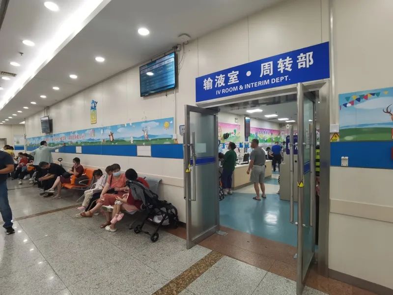 9月5日上午9时许,儿科医院门诊楼2内科诊区诊室外面,候诊的家长和孩子们人头攒动。