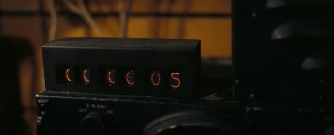 图片截取自《奥本海默》宣传片但实际上数码管 1955 年才发明,曼哈顿计划没机会用。电影里使用的似乎是苏联制 IN-14,那是 70 年代才有的产品。