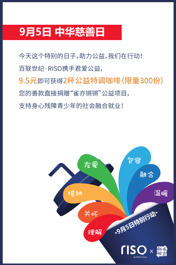 ·中华慈善日,百联世纪&RISO邀你喝咖啡做公益