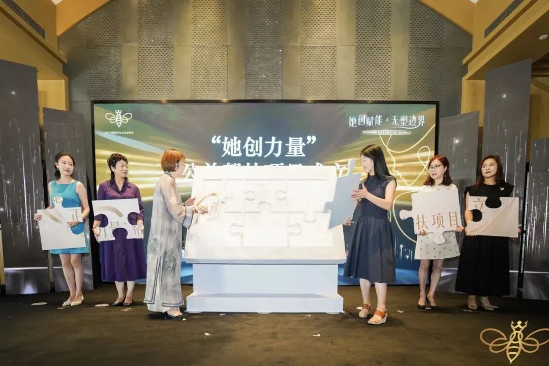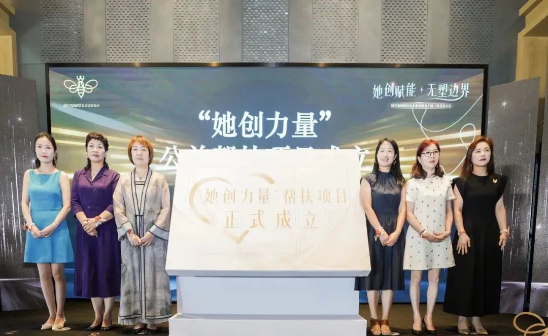 协会监事长俞杏英,2024-2025年度轮值会长团队负责人顾洁萍,副会长何志娥、邵爱娟、洪孟飞,会员王敏共同参与“她创力量”公益帮扶项目成立。