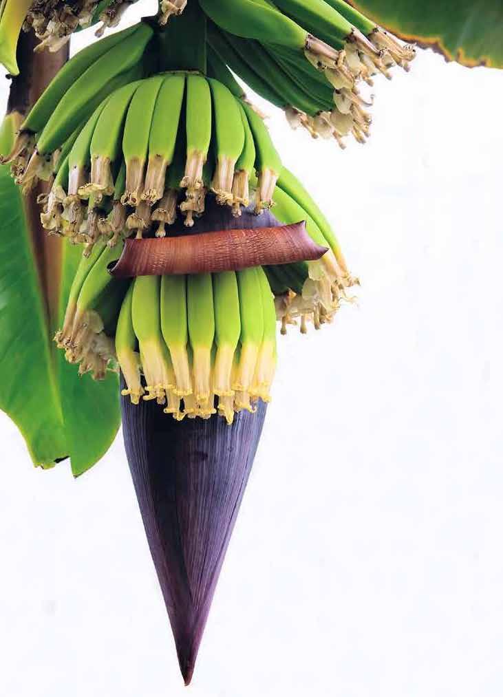 图源:Edible Hawaiian Islands香蕉的花朵有两层花瓣,里面有很多雄花和雌花。雄花在上面,雌花在下面。雄花会先开放,然后掉落。雌花会被授粉,然后变成果实。