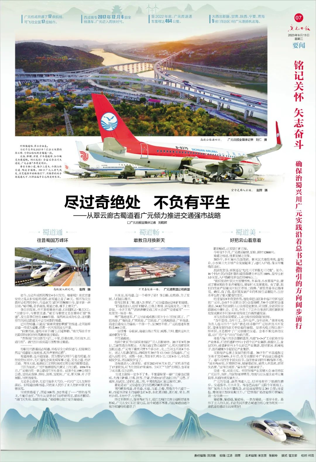 关隘、驿铺、津渡,千年蜀道难,如今蝶变为蜀道畅。何以见得?全省42条出川大通道,广元占据7条便是明证。