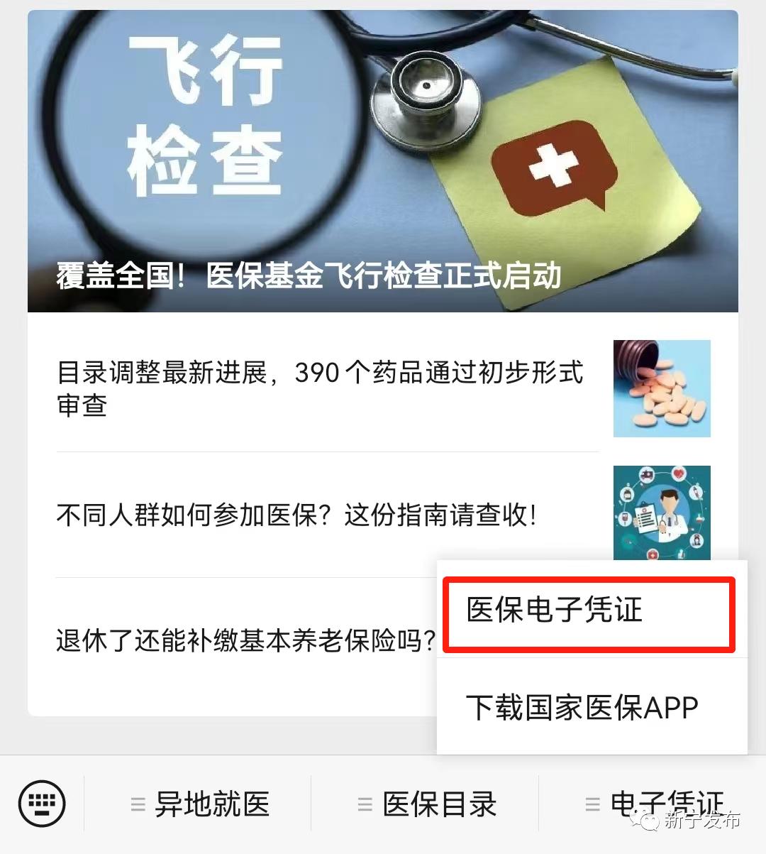 关注“中国医保”微信公众号。点击菜单栏“电子凭证”-“医保电子凭证”进入页面进行激活操作。