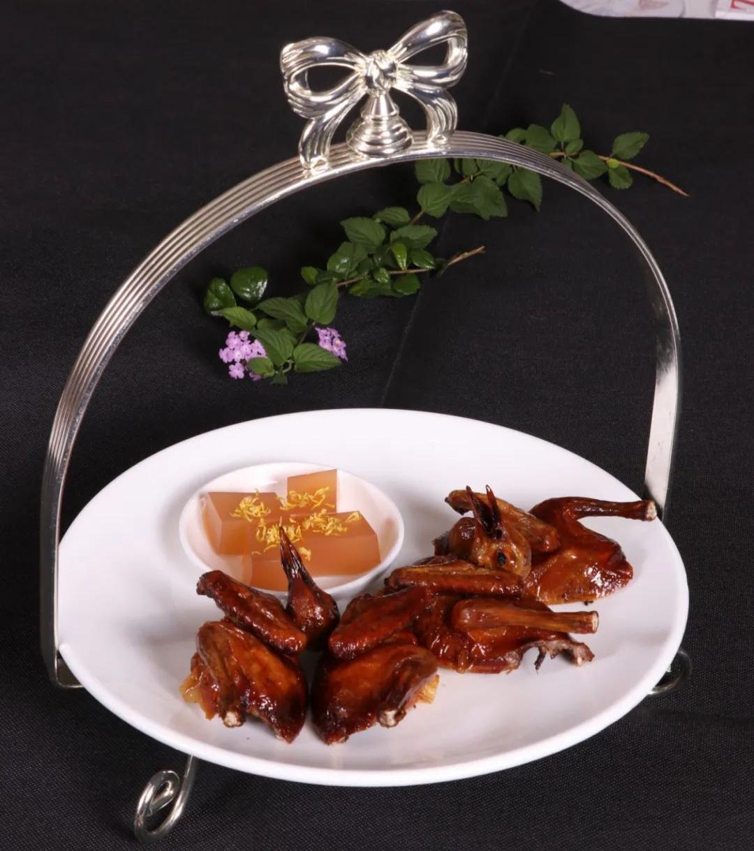 3.在腌制鸽子时加入陈皮粉,走菜前再撒陈皮末,不仅解腻,也丰富了此菜的味道层次。
