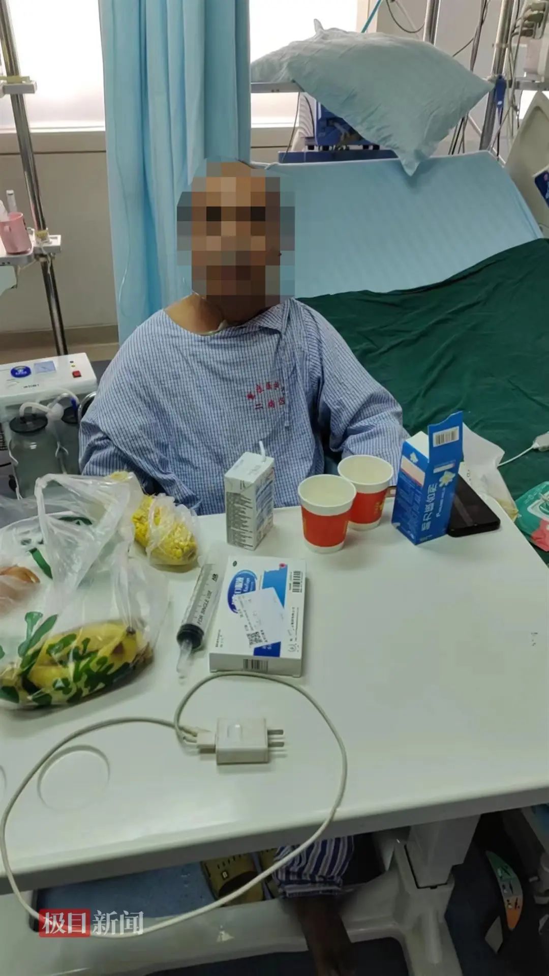 郭先生父亲转入普通病房治疗(图源:受访者)12日,桂林医学院附属医院的急诊接线人员表示,事情属实,这一家人入院后转到肾内科治疗。肾内科的值班人员也确认了此事,但病情、后续治疗等情况不便透露。
