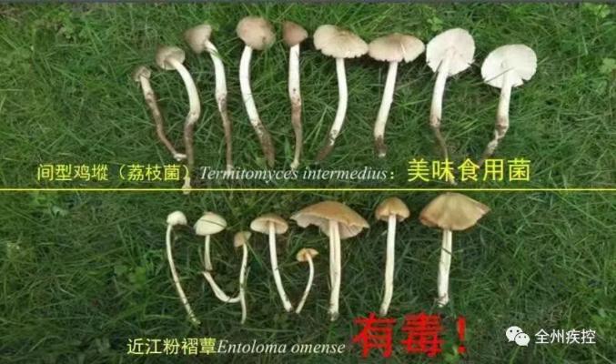 据兴安疾控,在天气温暖、雨量充沛的条件下,山林中会生长出大量野生菌。其中有种名叫近江粉褶蕈的蘑菇,与日常食用的鸡枞菌十分相似,但却有毒。