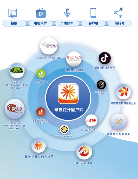 攀枝花市是全国60家地市级媒体深度融合发展试点之一。2023年3月15日,攀枝花市融媒体中心正式成立,攀枝花日报社、攀枝花市广播电视台两家市级媒体全面整合,按照业务融合、平台融合、机构融合、构建全媒体传播体系“四步走”路径,积极推进理念、内容、手段、机制等全方位创新,在“融”中新生,在“合”中成长,实现媒体能量的汇聚,全面挺进互联网主战场。