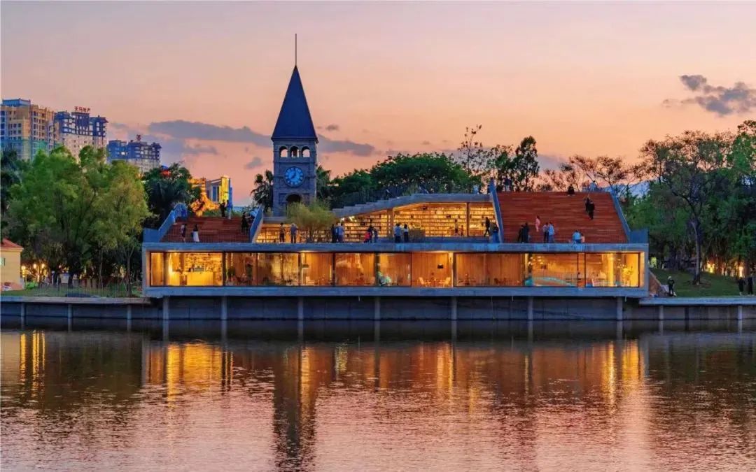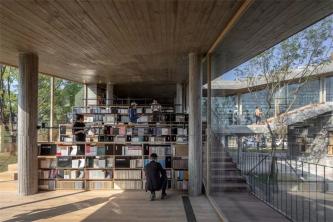 整座书店既有四合环绕的中式设计,也有充满西式建筑风格的钟楼,回环交合、筋骨刚劲,既与南湖水波的潋滟构成了一段美妙的互文,亦是对于西南联大“刚毅坚卓”校训的一次视觉化呼应。