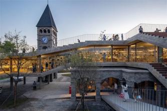 西南联大先锋书店位于蒙自市南湖公园东侧,毗邻湖面,风景优美。在设计建设中采用艺术的理念,充分考虑蒙自独特的历史文脉和南湖的地理位置,保留了场地的钟楼和部分砖房,并以当代性的建筑语言,同历史场景和记忆融合呼应,重塑出一个崭新的当代人文空间,用设计的语言展示了先锋书店开放、独立、自由、人文的理念。