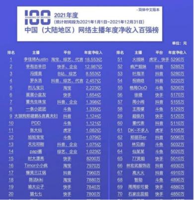 在那份《网络主播年度净收入百强榜》中,年收入过亿的主播超过14个,一些大众看来名不见经传的网红们年薪也超过千万。