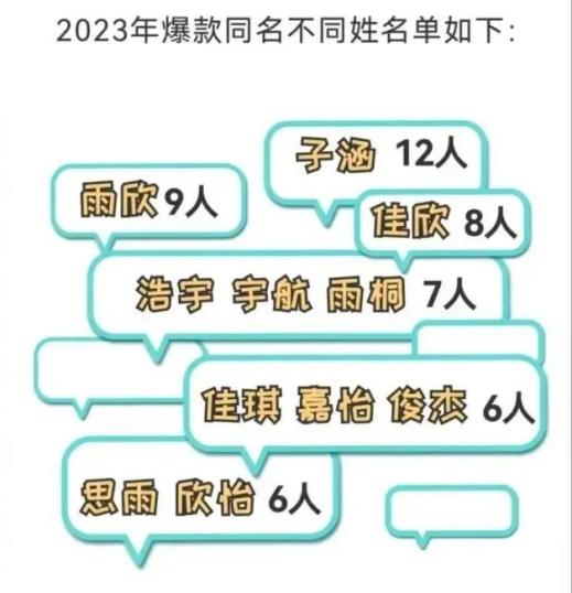 近日,多所高校公布了新生姓名统计,其中“子涵”和“欣(心)怡”重名最多。