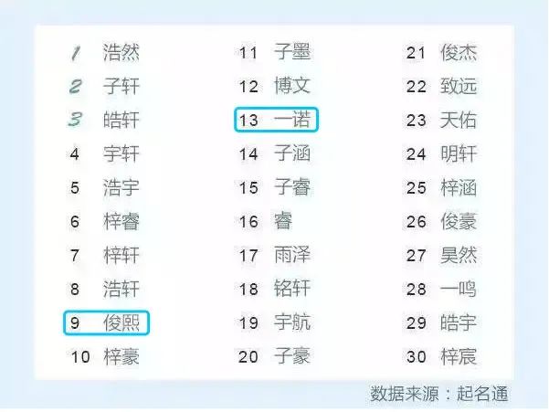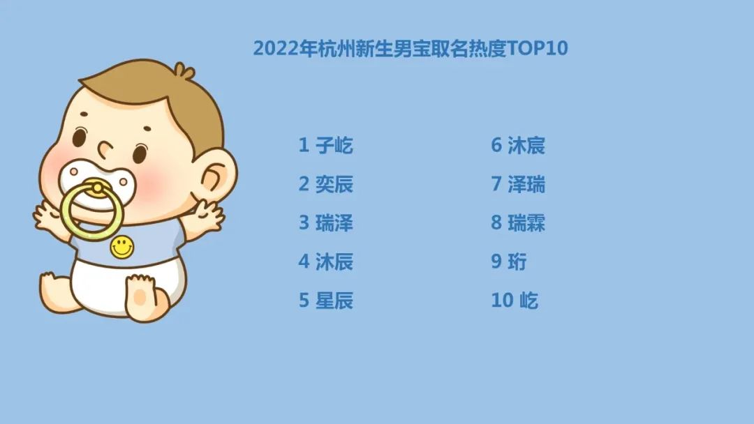2022年新生男宝使用最多的十个名字(杭州地区)
