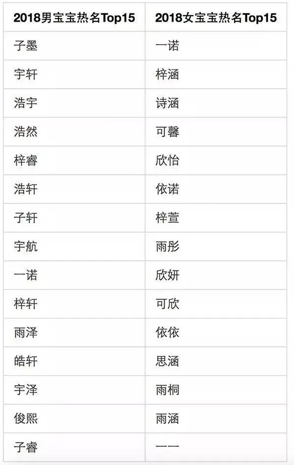 女孩名字中重名出现最频繁的为:心怡、雨涵、子涵。