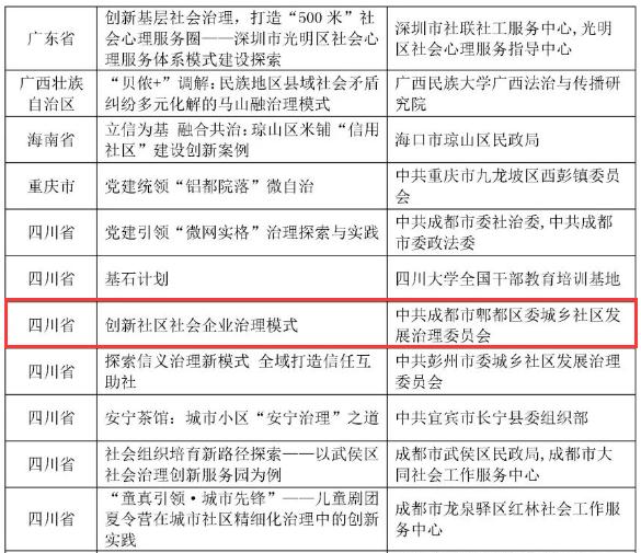 郫都区“创新社区社会企业治理模式”