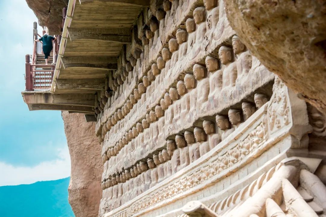 他们从高处开始逐层凿壁、雕刻窟室,每完成一处,即拆除上方的脚手架,只保留部分栈道,供礼佛时行走之用。这一周而复始的过程,一直持续至山脚,如此精妙地展开。