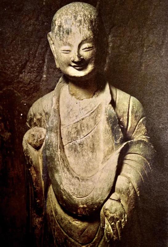 △(图/姚佳彤)1956年秋天,日本摄影家名取洋之助来到麦积山石窟拍摄,微笑的佛像给他留下了深刻的印象。他说:“数达几百个魏代的像全都在嘴边露出不可思议的柔和的微笑。其中很多微笑的表情是在微暗的洞窟内部,受到射进来的柔和光线的反射,隐约可见。”