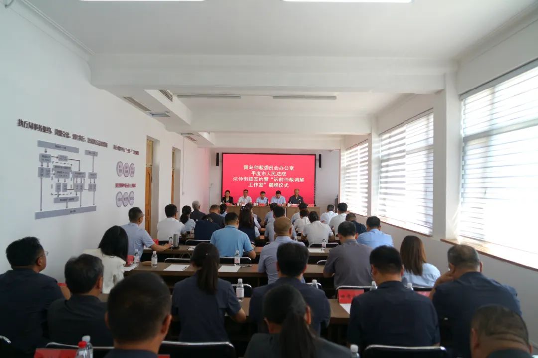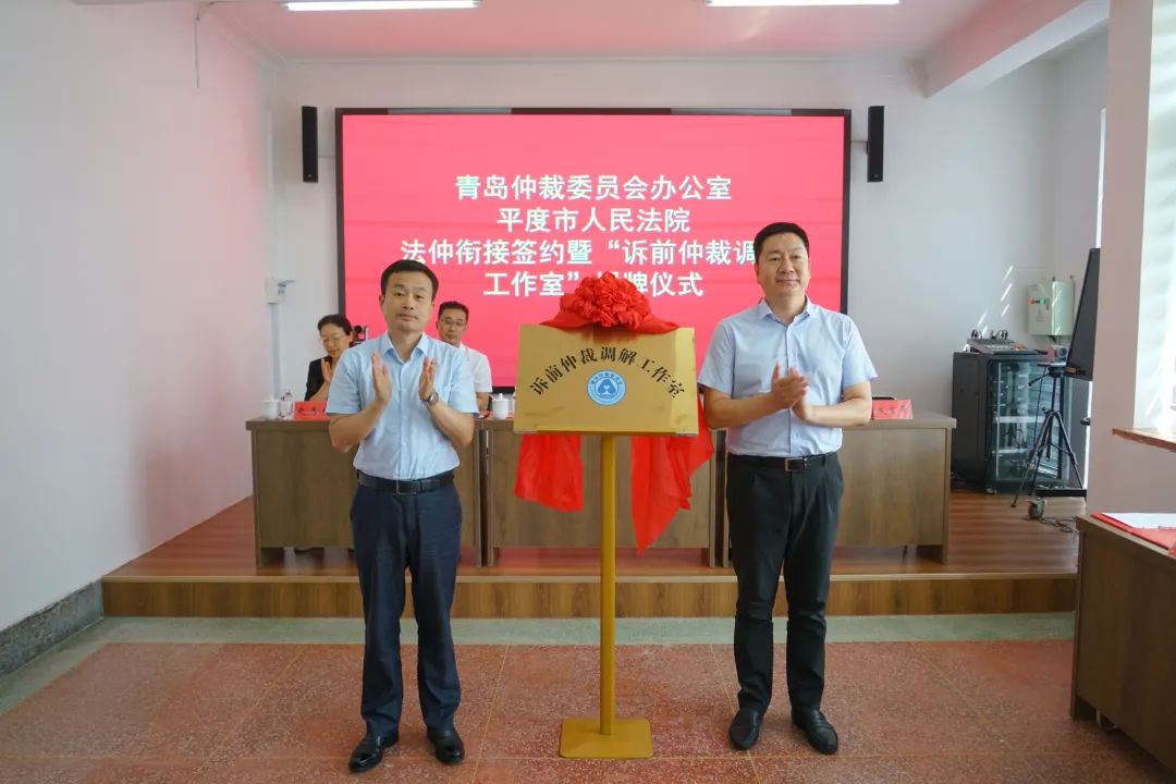 摄影/李晨原标题:《【优化营商环境 政法在行动】青岛首家!平度法院和青岛仲裁委员会办公室举行法仲衔接签约暨“诉前仲裁调解工作室”揭牌仪式》