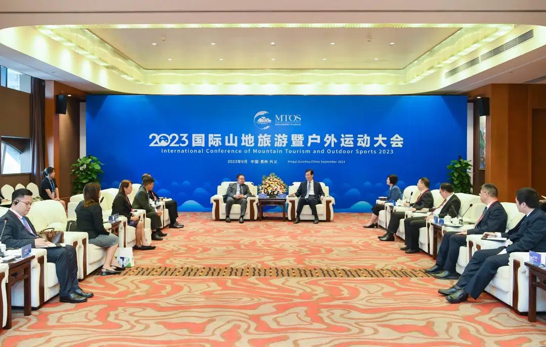9月15日,省长李炳军在黔西南州会见来黔出席2023国际山地旅游暨户外运动大会的菲律宾阿尔拜省省长拉格曼一行,并与拉格曼签署建立友好省关系意向书。副省长张敬平参加。