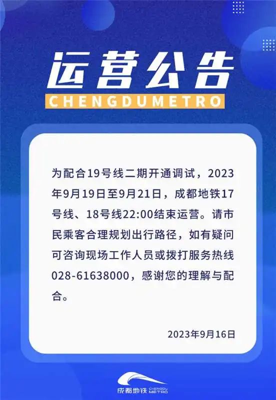 原标题:《9月19日-21日,成都地铁17、18号线出行有变化!》