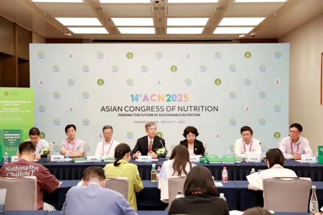 2023年9月15日,2023版中国居民膳食营养素参考摄入量发布会在第十四届亚洲营养大会上同期举行,中国DRIs修订专家委员会主任委员、中国营养学会理事长、中国疾控中心营养与健康所杨月欣教授,副主任委员中国疾控中心营养与健康所杨晓光教授、青岛大学马爱国教授、哈尔滨医科大学孙长颢教授,以及常量元素修订技术工作组组长、华中科技大学刘烈刚教授,其他膳食成分修订技术工作组组长、中山大学凌文华教授,脂溶性维生素修订技术工作组组长、南京医科大学汪之顼教授,出席发布会并回答媒体提问。发布会由杨晓光教授主持。