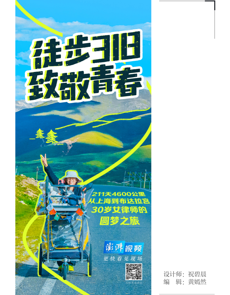 【徒步318致敬青春】山东姑娘王瑞瑞在过完30岁生日后,决定送自己一段享受孤独的旅行:沿318国道徒步横穿中国。2月7日,她从上海人民广场出发,9月6日到达布达拉宫。