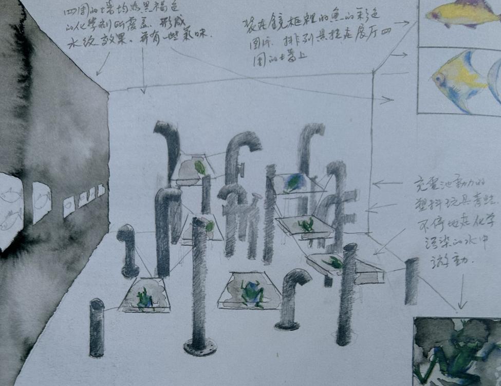 1996年张健君《水源、水质和人类》草图 钢量、塑料等(图片来源于首届上海双年展画册)
